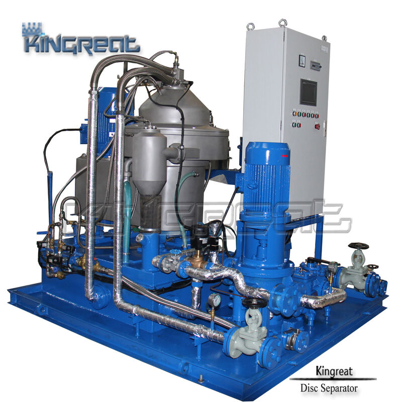 In this module, fuel oil separator is the core of heavy oil separation module and will equip with corresponding pumps and valves according to the actual requirements of customers. The control system realizes intelligent fully automatic control by PLC display and program. This module is mainly used to separate the heavy fuel oil in heavy fuel oil setting tank, and pump to heavy oil daily service tank to supply for fuel oil booster module.